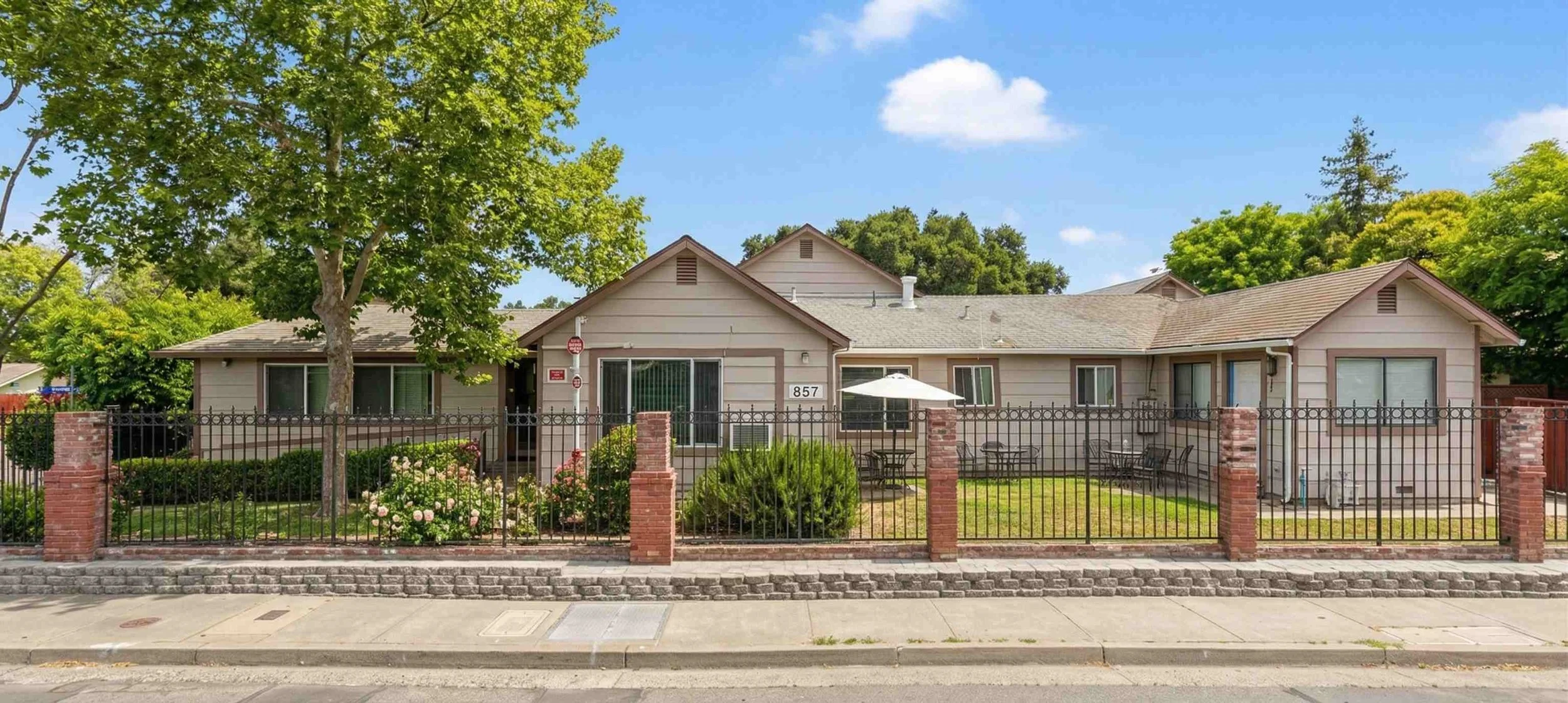 | Outdoor Area | Fenced, secure backyard with walking paths and seating. |